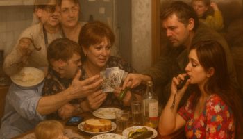 «А ты покупаешь деликатесы мамочке?! Чтобы она одна их ела?!» — воскликнула жена и, не выдержав, поднялась, уводя детей прочь
