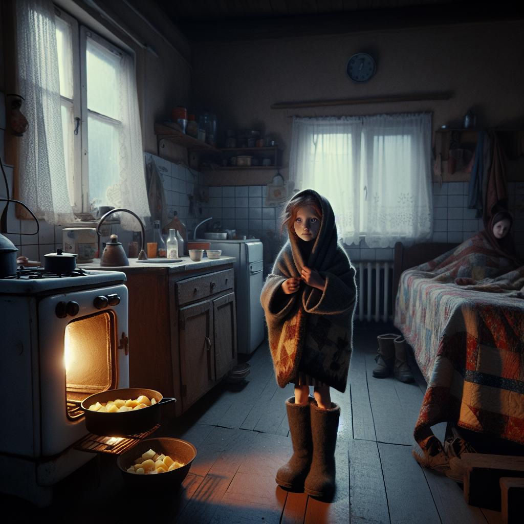 Ольга, маленькая шестилетняя девочка, старалась согреться под старым стеганым одеялом и ждала возвращения матери.
