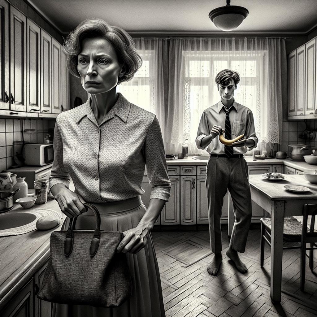 В руках у него был банан, в глазах — стандартное равнодушие. — Оля, зачем ты так нервничаешь?