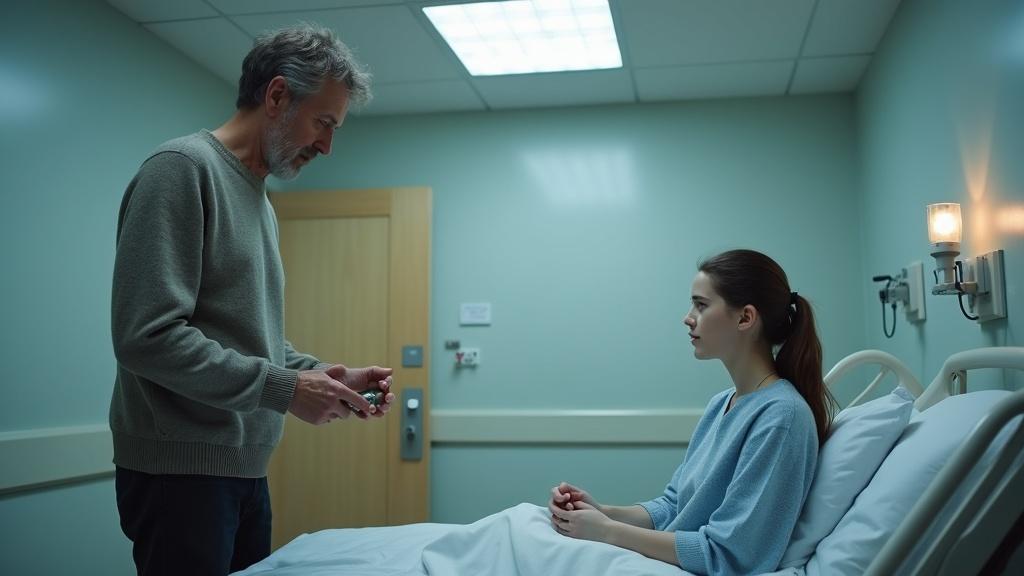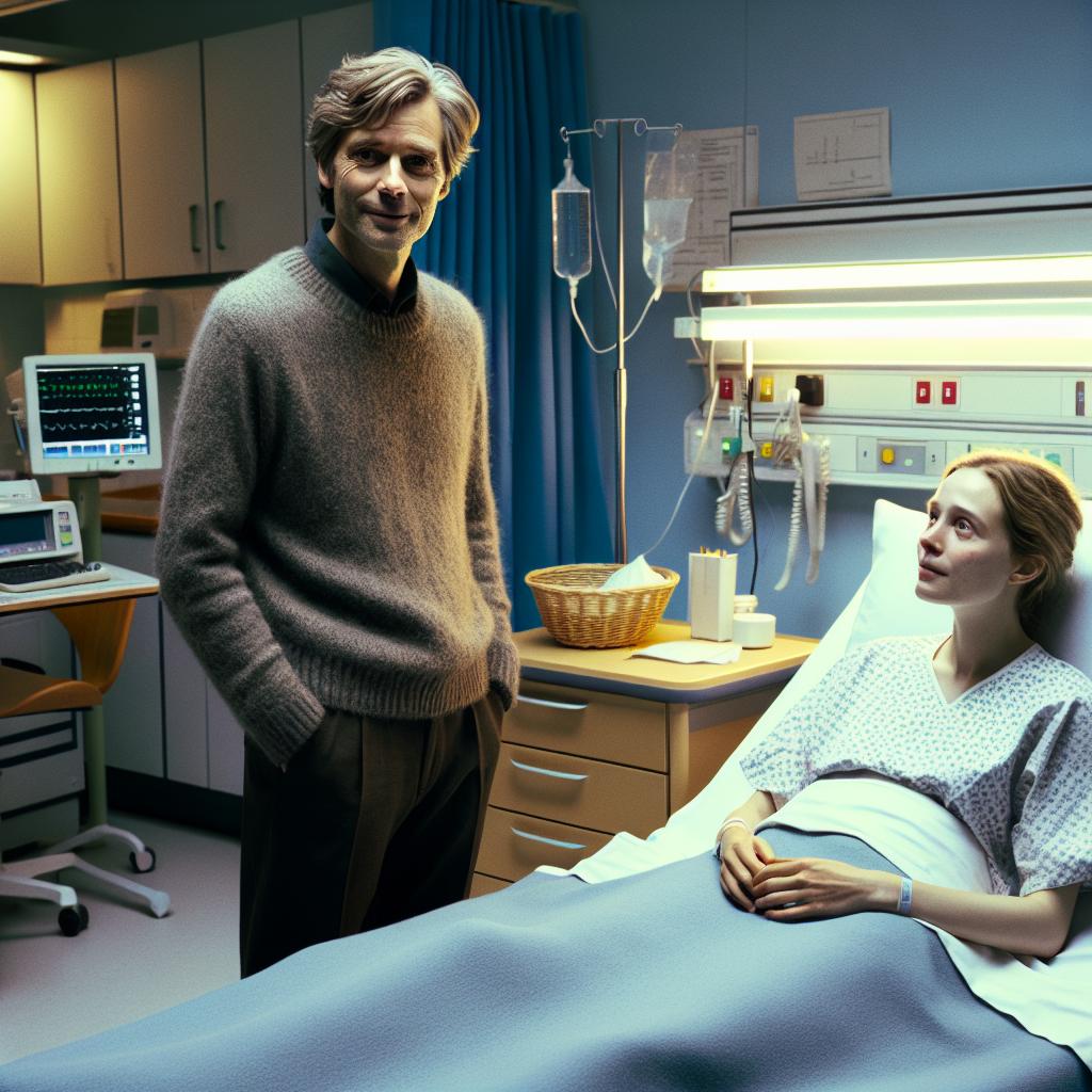 Он вошёл в палату, поцеловал жену и подмигнул соседке по кровати — очаровашке, которая с интересом наблюдала за их встречей.