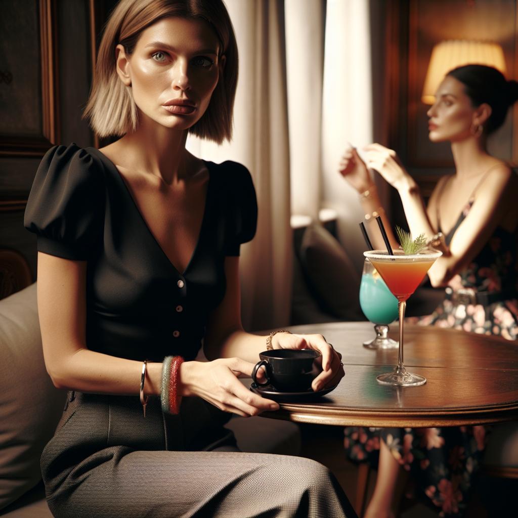 Она нарочно вытащила из сумочки несколько крупных купюр и бросила их на стол, с запасом покрывая счёт. — Угощаю, — сказала она и, не прощаясь, направилась к выходу, цокая каблуками по мраморному полу.