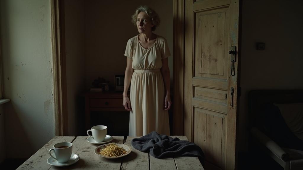Она осторожно подтолкнула створку, и старая древесина, издавая тихий, почти живой стон, распахнулась, впуская её в молчаливый, застывший воздух дома.