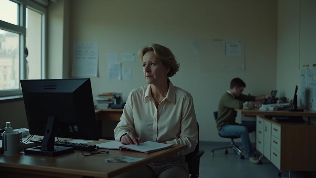 Она сидела за своим столом в офисе строительной компании, не вмешиваясь в разговоры сотрудников.