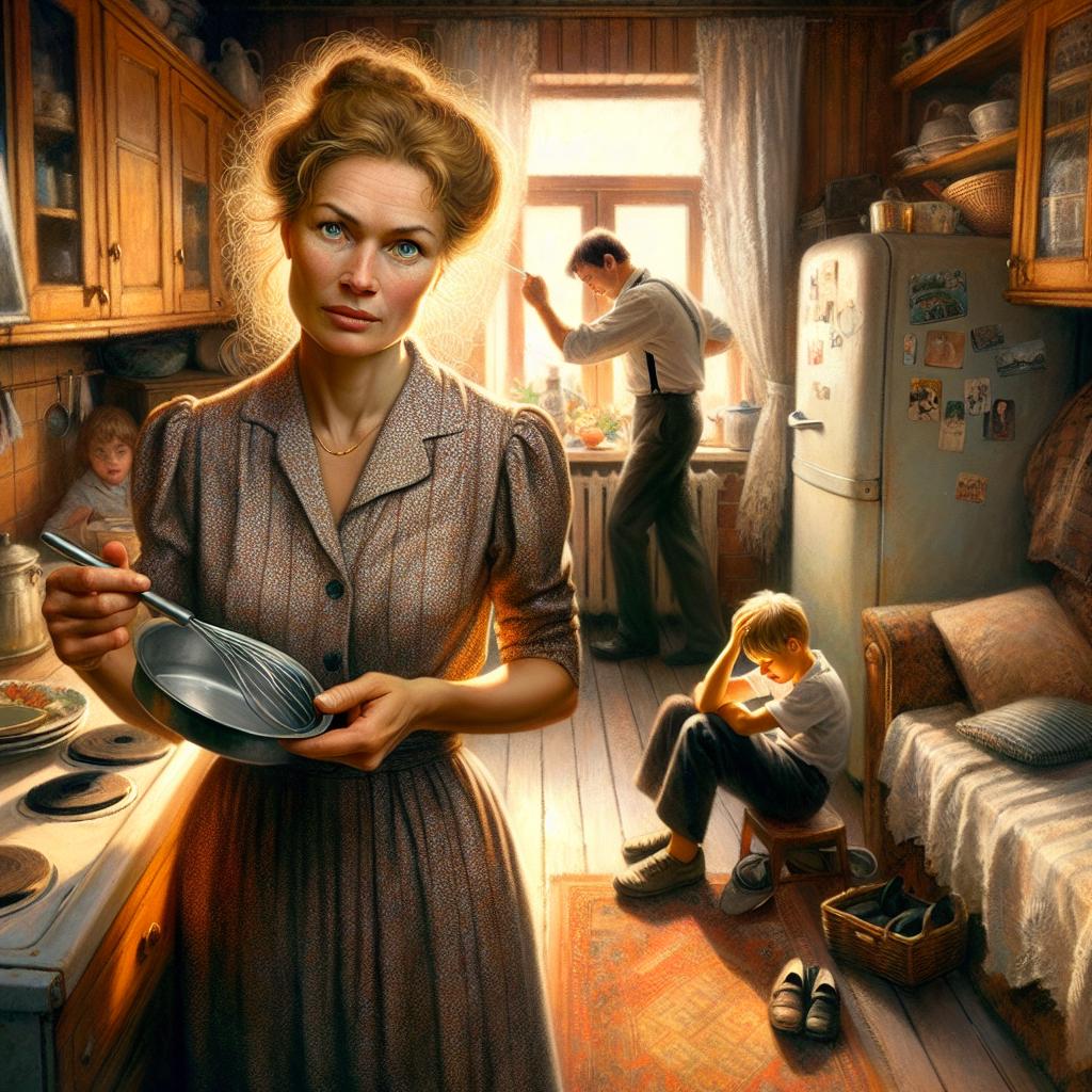 — Неужели так сложно привести квартиру в порядок к моему приходу? Ты же всё равно целый день дома! — голос Василия донёсся из коридора, прерываясь на раздражённое бормотание: он снова споткнулся о разбросанную детскую обувь.