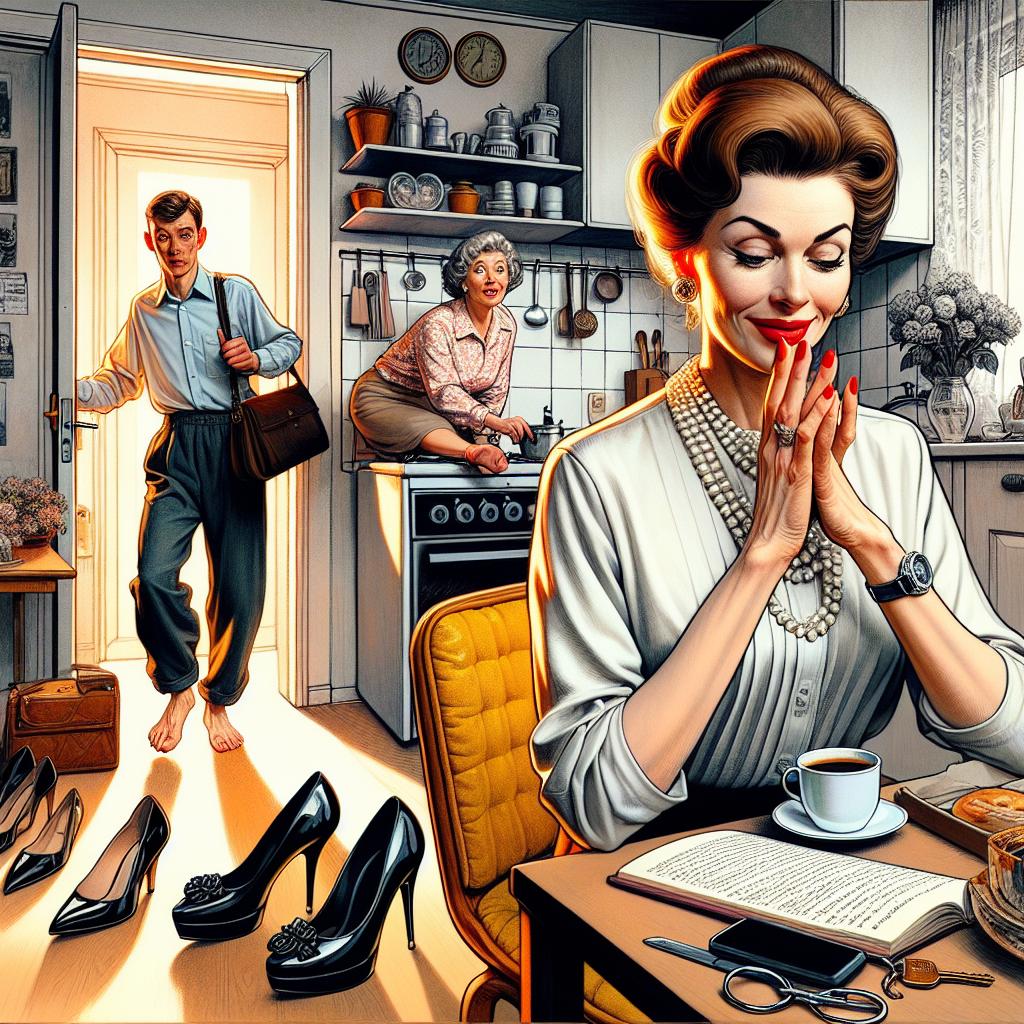 Когда Ирина вернулась домой после трудового дня, первым, что бросилось ей в глаза, оказалась пара незнакомых туфель в прихожей. Женская обувь — лакированные туфли на шпильке, явно недешёвые — стояла аккуратно у стены, словно их владелица знала точное место для них. Ирина застыла с ключами в руке. В воздухе витал аромат чужих духов и свежего кофе.