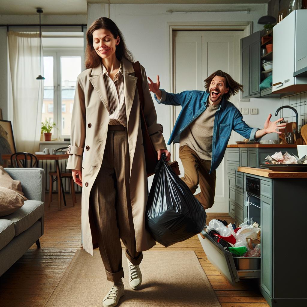Оксана переступила порог квартиры и тут же наткнулась на пакет, доверху набитый мусором. Осмотревшись, она едва не потеряла сознание — за те две недели, что её не было дома, Тарас умудрился превратить жильё в настоящий хаос.