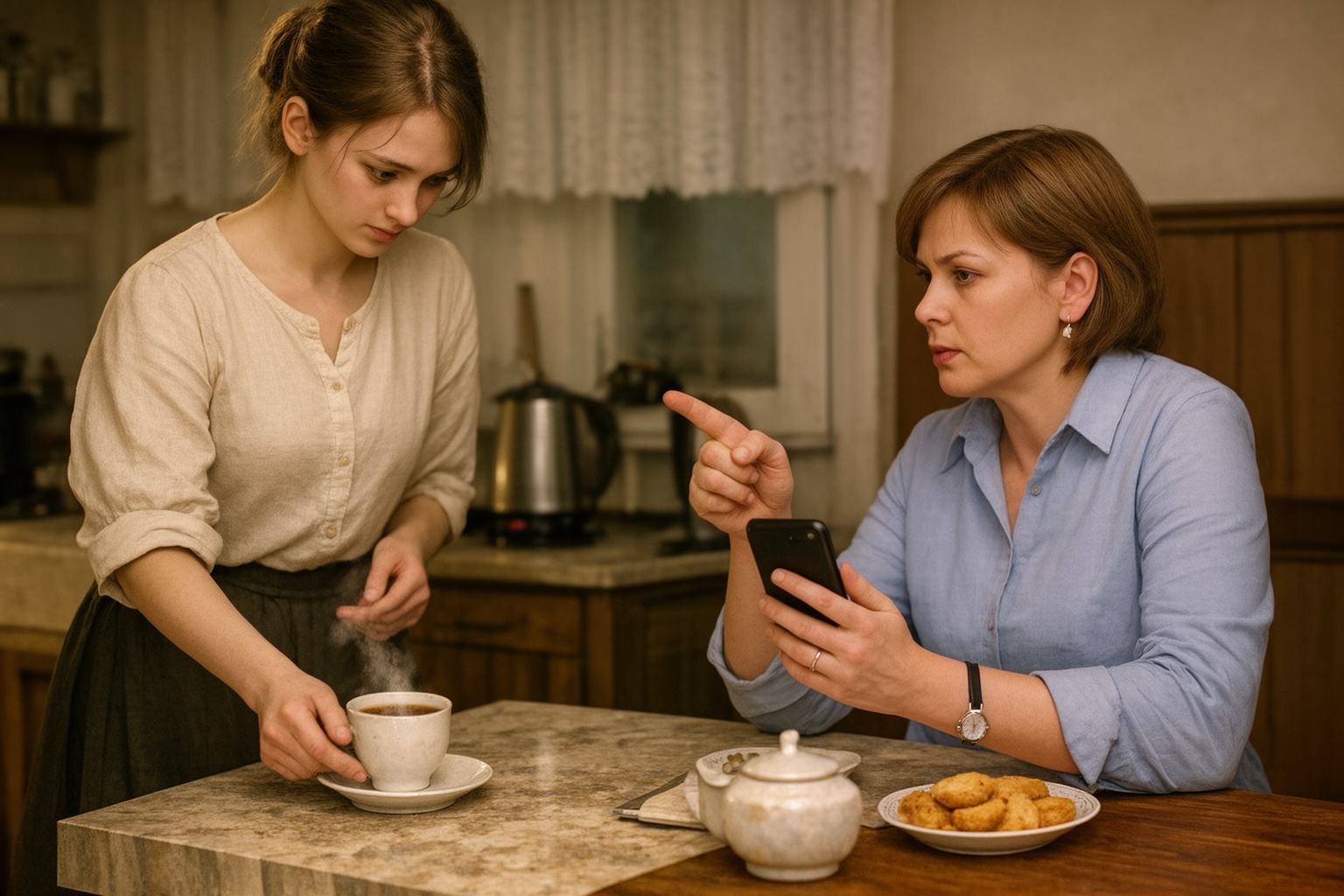 — Анастасия Волошин, я не добавила сахар? — Мария Петренко поставила чашку перед мачехой, стараясь не встречаться с ней взглядом.