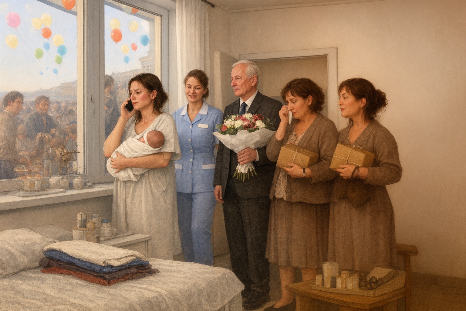 В палате роддома витал запах кварца, детской присыпки и моего собственного, липкого стыда, который накрыл меня с головой всего несколько минут назад — сразу после короткого разговора по телефону с мужем. Я стояла у окна, прижимая к себе аккуратно завернутого младенца — моего новорожденного сына — и наблюдала, как во дворе счастливые отцы выкладывают на асфальте благодарственные надписи «Спасибо за сына!» и отпускают в небо воздушные шары. Телефон в моей вспотевшей ладони еще хранил тепло прикосновения, но произнесённые сквозь динамик слова будто обожгли изнутри.