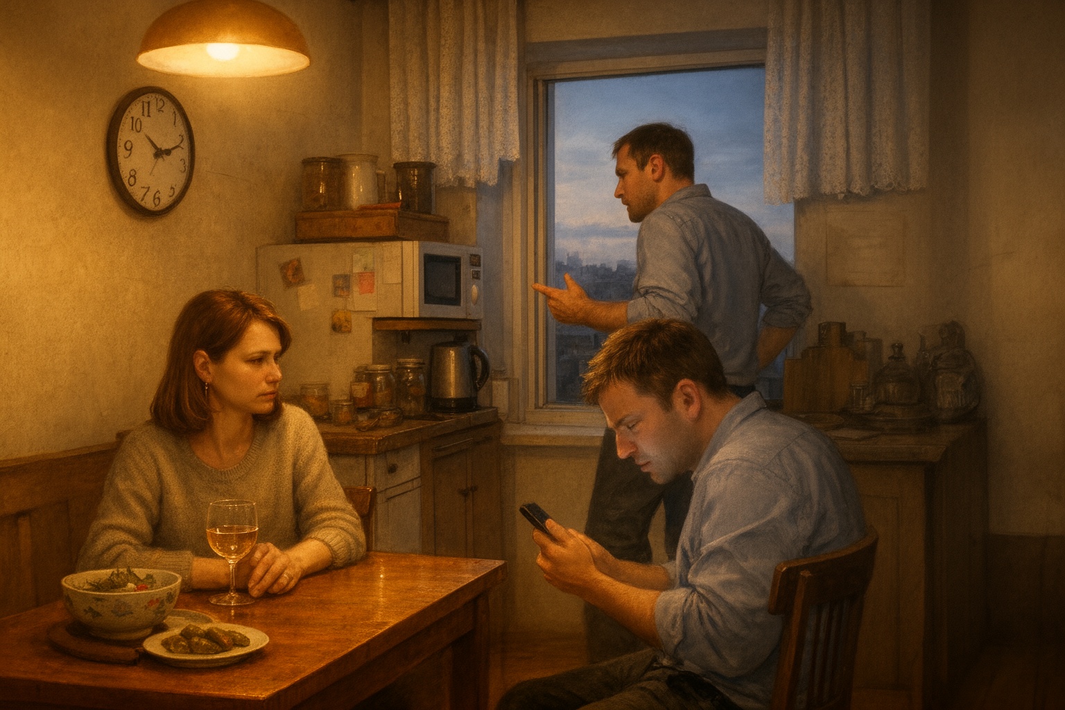 Субботнее утро началось с плотного, невысказанного молчания. Спор о деньгах никуда не делся — он словно завис в воздухе, как запах гари после мелкого пожара. Александр делал вид, что увлечен новостями на планшете, а София с удвоенным усердием протирала и без того чистые полки. Ее формальная победа не принесла радости — только тяжесть, которую хотелось стереть вместе с пылью.