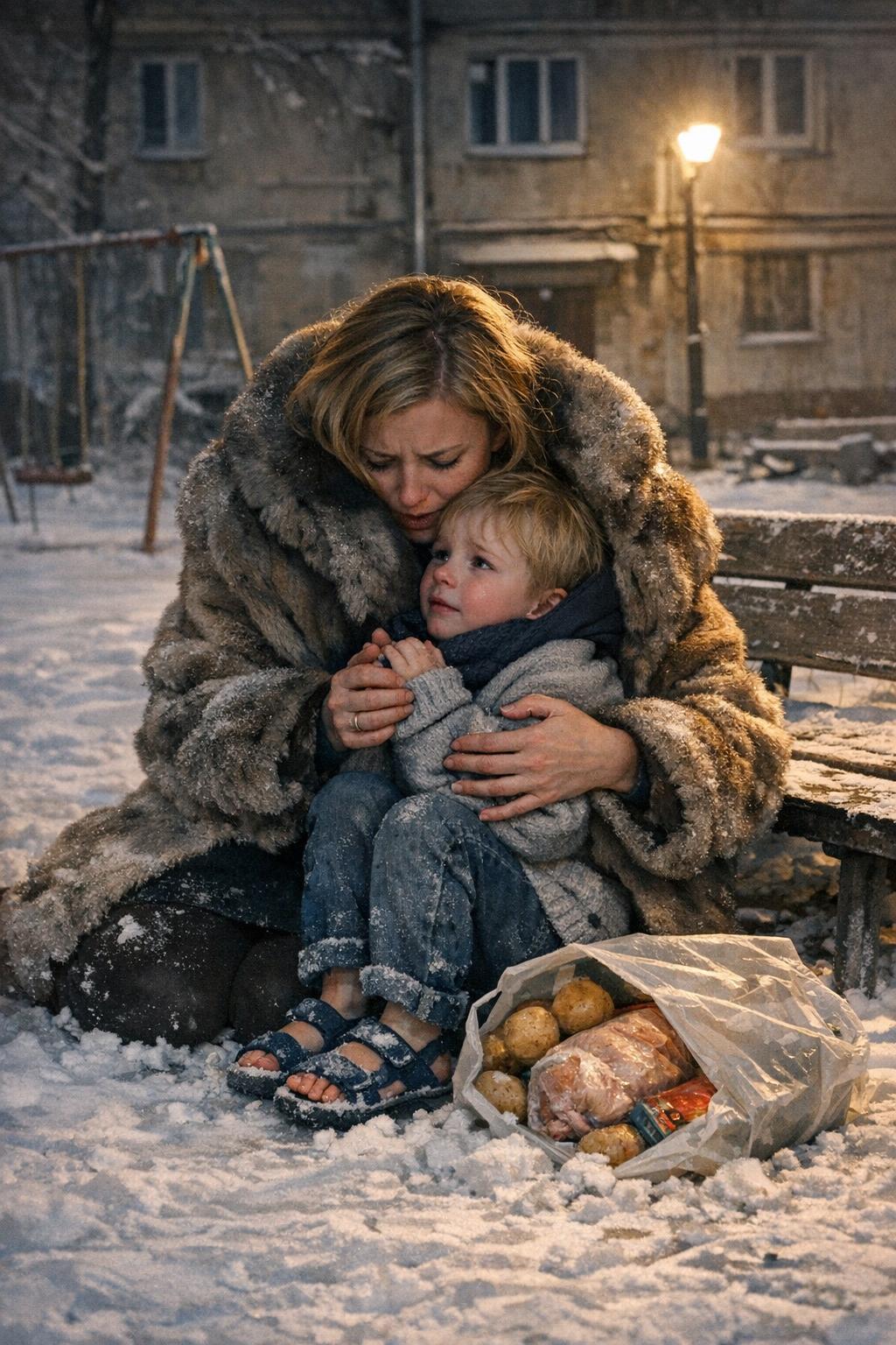 Подбежав, она опустилась перед ним прямо в снег, распахнула шубу и укутала Михайла полами, крепко прижимая к себе. Ладонями она растирала его посиневшие пальцы. Мальчик смотрел на неё снизу вверх, губы его дрожали.
