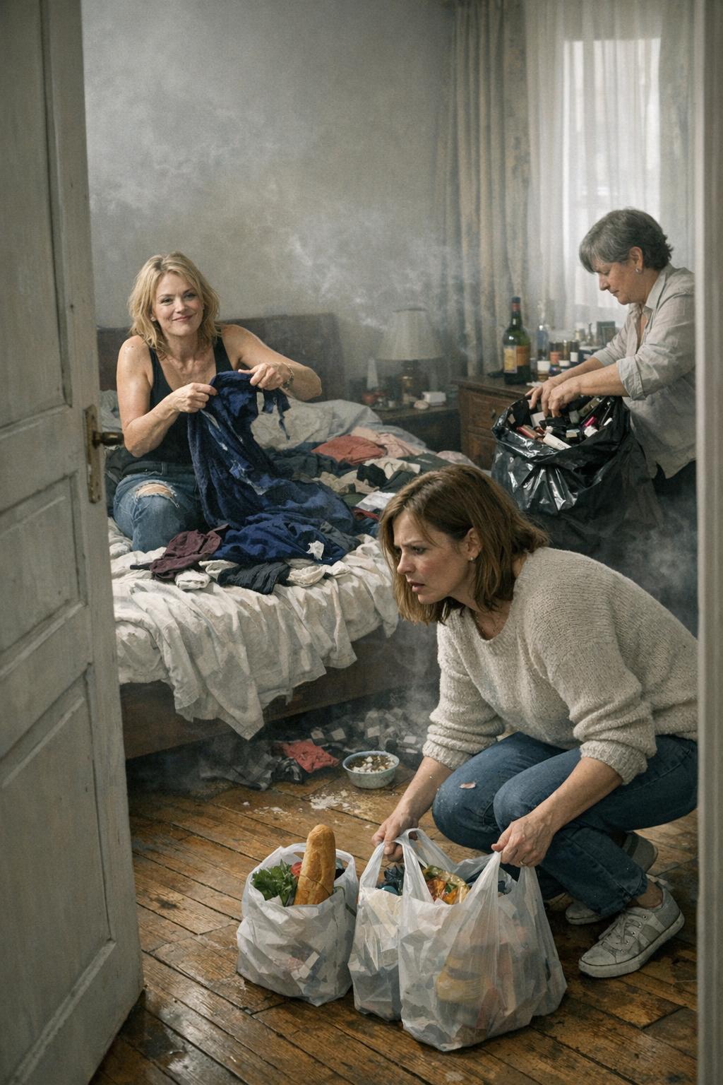— А, явилась, — протянула она, швыряя испорченное платье к остальным вещам на полу. — Мы тут порядок наводим. Уюта добавляем, так сказать. А то у тебя всё как в больничной палате — бело и пусто.