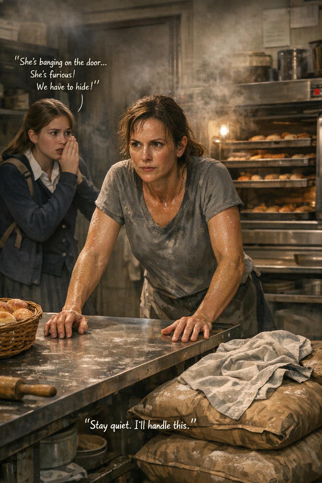 — Сидите тихо, — быстро сказала Оксана, стягивая фартук и бросая его прямо на мешки с мукой. — Не открывайте ни при каких условиях, даже если будет полицией пугать. Я уже еду.