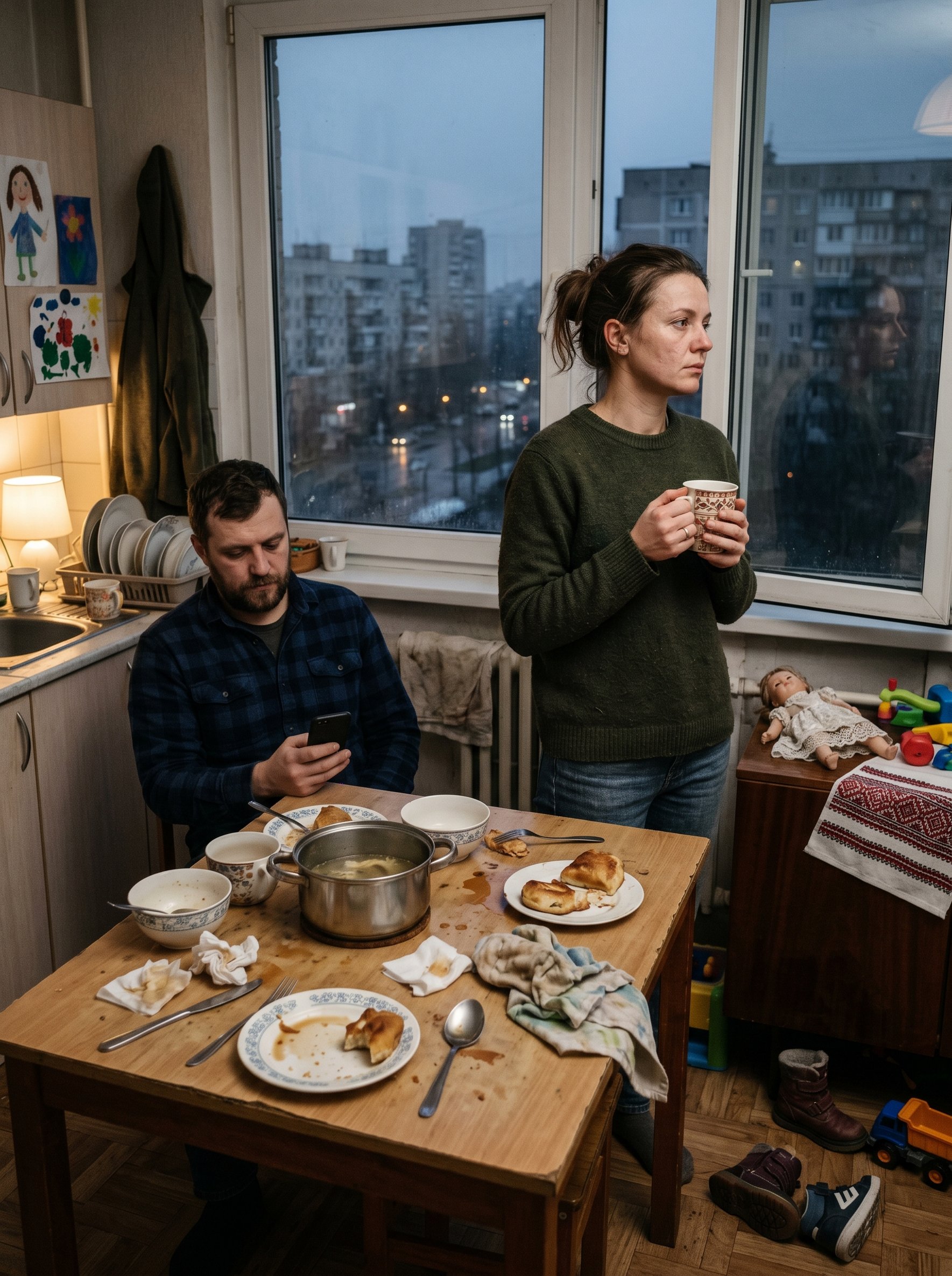 Оксана аккуратно поставила половник на подставку, вытерла ладони полотенцем и медленно повернулась к мужу.