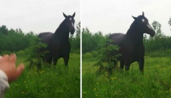 Девушки увидели лошадь и решили остановиться, что посмотреть на ней – но вот, что произошло, когда они включили музыку
